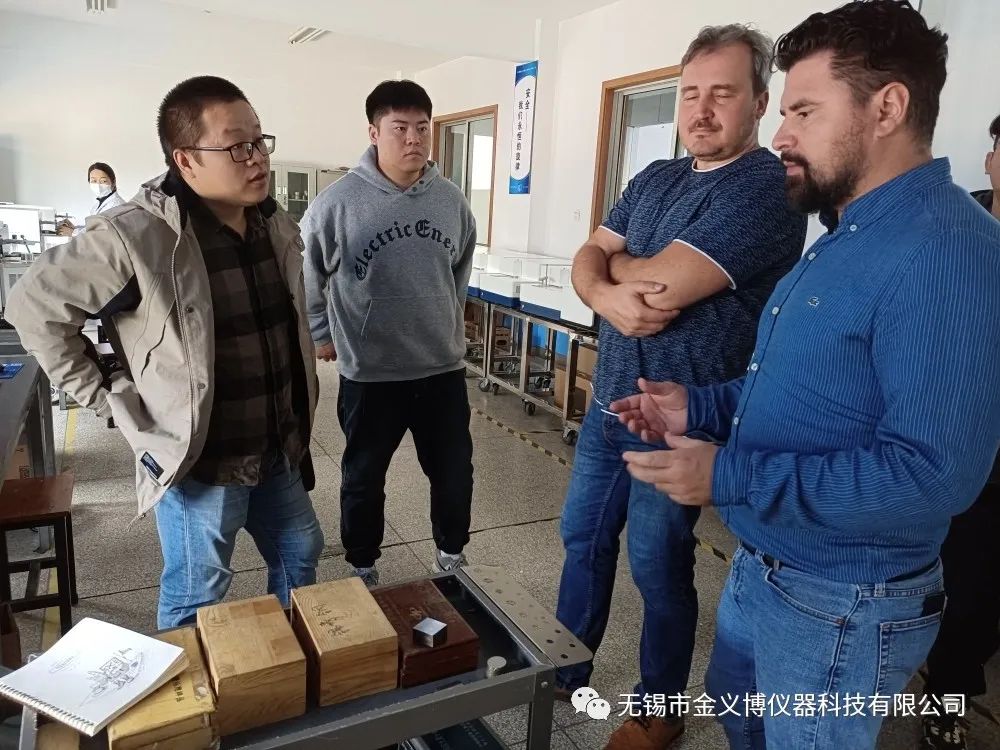 2022年10月14日—15日,俄羅斯的外國友人蒞臨無錫市金義博儀器科技有限公司參觀指導。由公司國際貿易部經理張新磊帶領著兩位外國友人參觀金義博直讀光譜分析儀制造生產線,對相關產品、技術等進行詳細地了解和實踐。