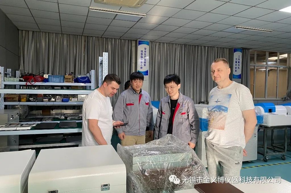 2023年4月21日,俄羅斯的外國友人蒞臨無錫市金義博儀器科技有限公司參觀學習 。由公司國際貿易部的同事帶領著兩位外國友人參觀金義博直讀光譜分析儀制造生產線,對相關產品、技術等進行詳細地了解和實踐。